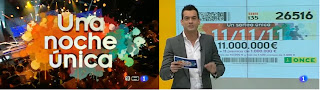 Una noche única, la gala presentada por Anne Igartiburu, Jesús Álvarez y José Ángel Leiras con la que la ONCE celebraba sus más de 70 años de labor social, fue el espacio más visto del día. Con más de 3,7 millones, 3.728.000, y un 20,7% de cuota de pantalla, el programa registró también el minuto más visto: fue a las 23.50 horas, cuando 4.759.000 espectadores seguían el comienzo del sorteo de los 11 millones de euros.